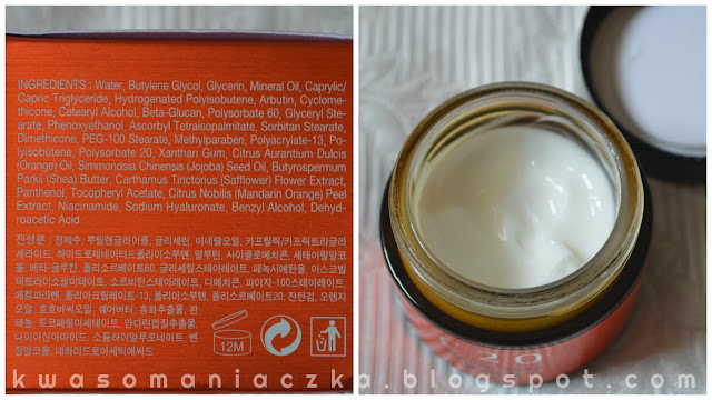 The cream contains niacinamide, arbutin, beta-glucan, hyaluronic acid and panthenol - a nicer components. Less interesting is the mineral oil and cetearyl alcohol (common comedogenic action on some people). Full breakdown on CosDNA, if someone wants to be sure.